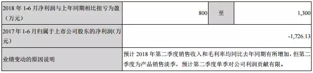 公告中對(duì) 2018 年 1-6 月經(jīng)營業(yè)績進(jìn)行了預(yù)計(jì),預(yù)計(jì)該時(shí)期內(nèi)經(jīng)營業(yè)績情況與上年同期相比扭虧為盈。