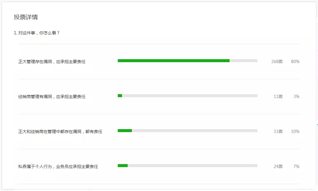 顯然,絕大多數投票者認為,南通正大對此事負有主要責任。