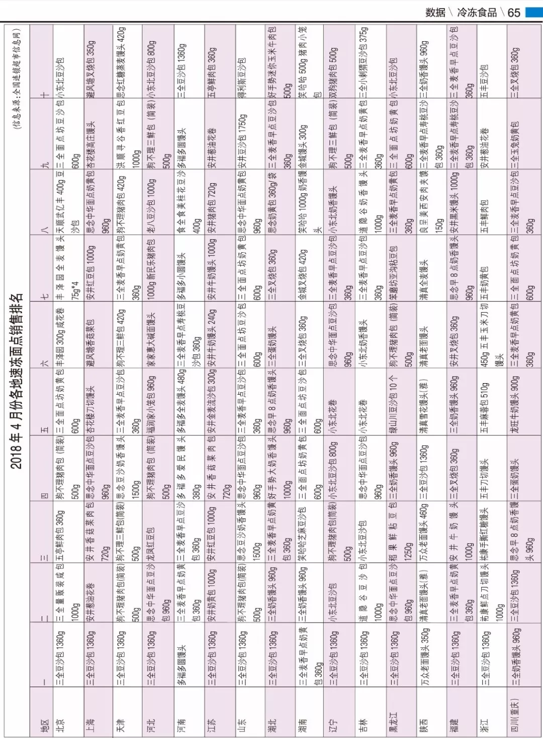 來(lái)源: 冷凍食品網(wǎng) 發(fā)布者:編輯▼2018年4月份各地速凍面點(diǎn)銷售排名