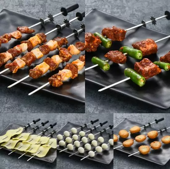 而菜品也是獨具川渝特色,并主要分兩種,一種是烤串類的半成品:大羊肉串、小郡肝、香辣排骨、滋香五花肉、秘制雞翅、專屬魚餅、特色豬腦花等;還有一種是已經(jīng)烹飪好的可以直接吃的熟食,如錫紙牛蛙等。