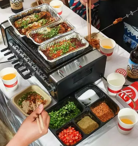 海底撈的燒烤外賣,是由送餐員帶著腌制好的烤串食材和電烤爐,上門手把手教顧客燒烤。而且烤制的手段和烤爐是用黑科技打造,即便是在面積10平米的小屋里也不會有煙,實現(xiàn)無煙燒烤。