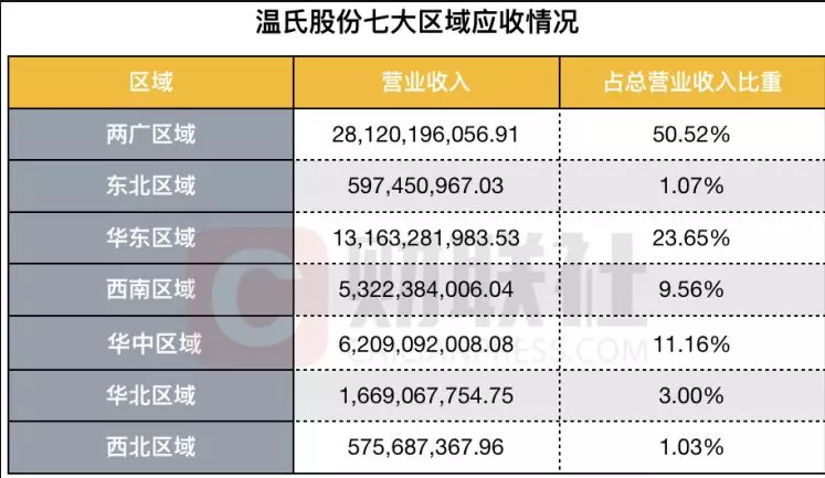 ▲ 溫氏股份七大區(qū)域應(yīng)收情況