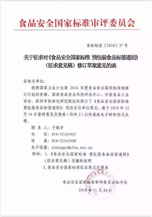 近日,食品安全國(guó)家標(biāo)準(zhǔn)審評(píng)委員會(huì)對(duì)外發(fā)布的關(guān)于征求對(duì)《食品安全國(guó)家標(biāo)準(zhǔn) 預(yù)包裝食品標(biāo)簽通則》(征求意見(jiàn)稿)修訂草案意見(jiàn)的函,根據(jù)征求意見(jiàn)稿,食品名稱中提及的配料或成分應(yīng)標(biāo)示該種配料或成分的添加量或在成品中的含量。