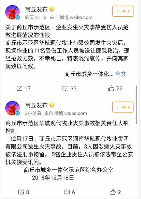 經(jīng)有關(guān)部門(mén)初步調(diào)查,事故因3名工作人員違規(guī)操作導(dǎo)致,目前3人均已被控制,此外華航現(xiàn)代牧業(yè)有限公司5名相關(guān)責(zé)任人也被依法帶至公安機(jī)關(guān)接受問(wèn)詢。
