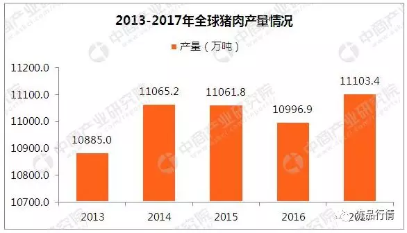 來(lái)源: 冷凍食品網(wǎng) 發(fā)布者:編輯根據(jù)中商產(chǎn)業(yè)研究院發(fā)布的《2018-2023年中國(guó)豬肉市場(chǎng)前景及投資機(jī)會(huì)研究報(bào)告》顯示,2017年全球豬肉產(chǎn)量為11103.4萬(wàn)噸,較2016年的10996.9萬(wàn)噸增長(zhǎng)0.97%。縱觀近五年全球豬肉產(chǎn)量情況,除2016年之外,其余年份均呈正增長(zhǎng)趨勢(shì)。