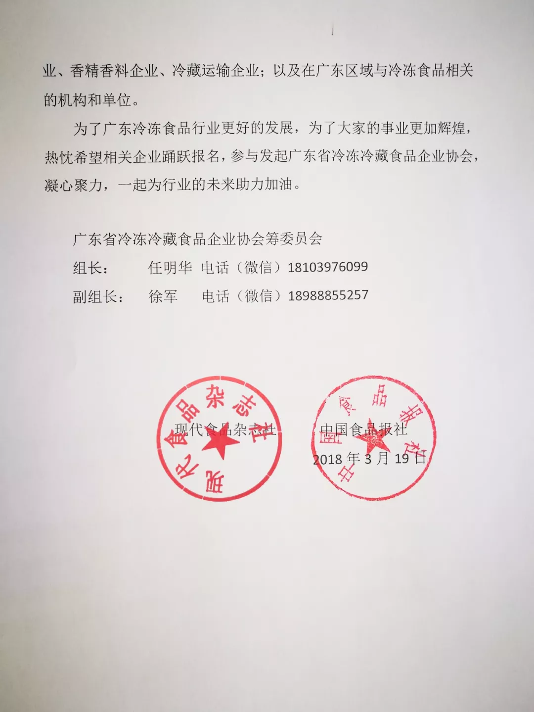 由《中國食品報》《現代食品》雜志社牽頭,擬邀請廣東省相關政府單位做指導,廣東凍品企業與經銷商共同參與,共同發起成立廣東省冷凍冷藏食品企業協會。