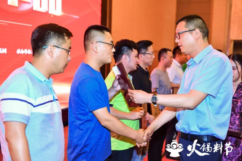 頒獎儀式在第八屆中國火鍋料節晚宴現場隆重舉行。現場燈光璀璨,掌聲雷動,為獲獎者加冕。