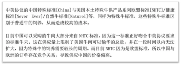 同時(shí),由于標(biāo)準(zhǔn)較高,屬于特殊牛標(biāo)準(zhǔn),造成生產(chǎn)、加工以及市場銷售的價(jià)格居高不下。并未達(dá)到市場對于美國牛肉成本優(yōu)勢的預(yù)期。
