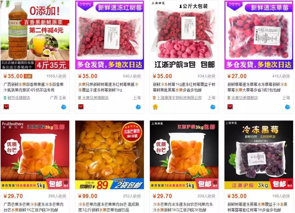 在淘寶、阿里巴巴等平臺搜索“冷凍水果”,數(shù)百條產(chǎn)品信息讓人眼花繚亂:冷凍芒果、草莓、樹莓、黃桃、無花果等等,各色產(chǎn)品種類繁多,儼然已經(jīng)成為一個小熱門品類。淘寶上銷量最高的冷凍水果,交易量達(dá)2300多筆,累計評論2100多條,產(chǎn)品收藏數(shù)最高超過1.3萬。