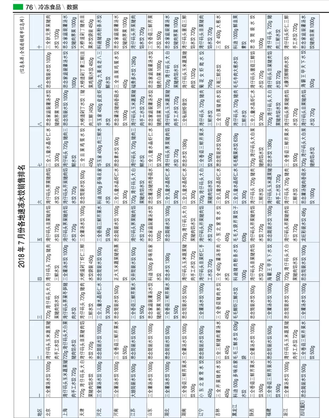 備注:該排名由全國連鎖超市信息網提供,數據來源于全國300多家大中小型超市系統的近2000家門店的冷凍食品銷量,不包含百貨商場及其他小店。各省份門店樣本數量不盡一致,排名情況,僅供參考。