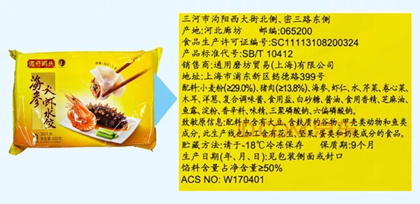 “食品名稱中提及的某種配料或成分而未在標(biāo)簽上特別強(qiáng)調(diào),不需要標(biāo)示該種配料或成分的添加量或在成品中的含量。”該工作人員說,海參大蝦水餃只是食品名稱,其圖案及文字不是標(biāo)和蝦仁的含量。而且海參大蝦并不是特別強(qiáng)調(diào),只是表述產(chǎn)品真實(shí)屬性的名簽中強(qiáng)調(diào)的內(nèi)容,因此可以不用標(biāo)注海參稱。